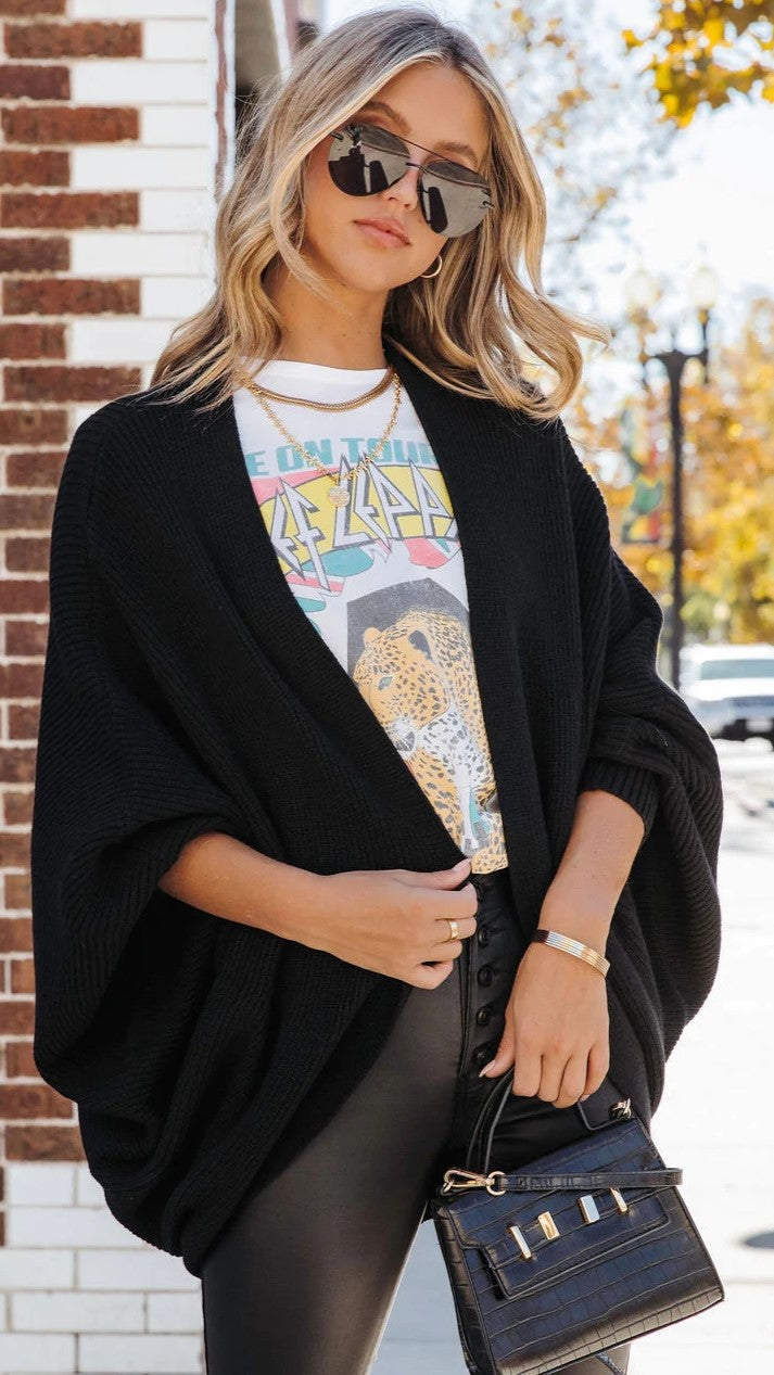Black Batwing Ribbed Knit Cardigan