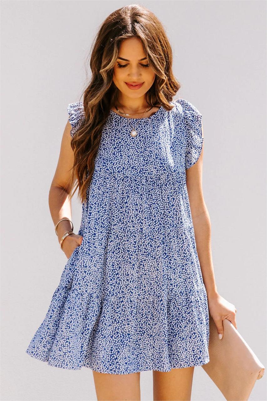 Dream of frolicking in floral fields in our Blue Ivy Pocketed Tiered Babydoll Tunic! A white and blue floral print makes up this girl babydoll dress. With flutter sleeves and a tiered body. this piece is comfortable and cute. Finished with a back button closure. Styled with the Accent Herringbone Necklace. Rising Sun Pendant Necklace. Stella Crossbody Envelope Zip Clutch. and Ritz Faux Suede Pointed Heel.