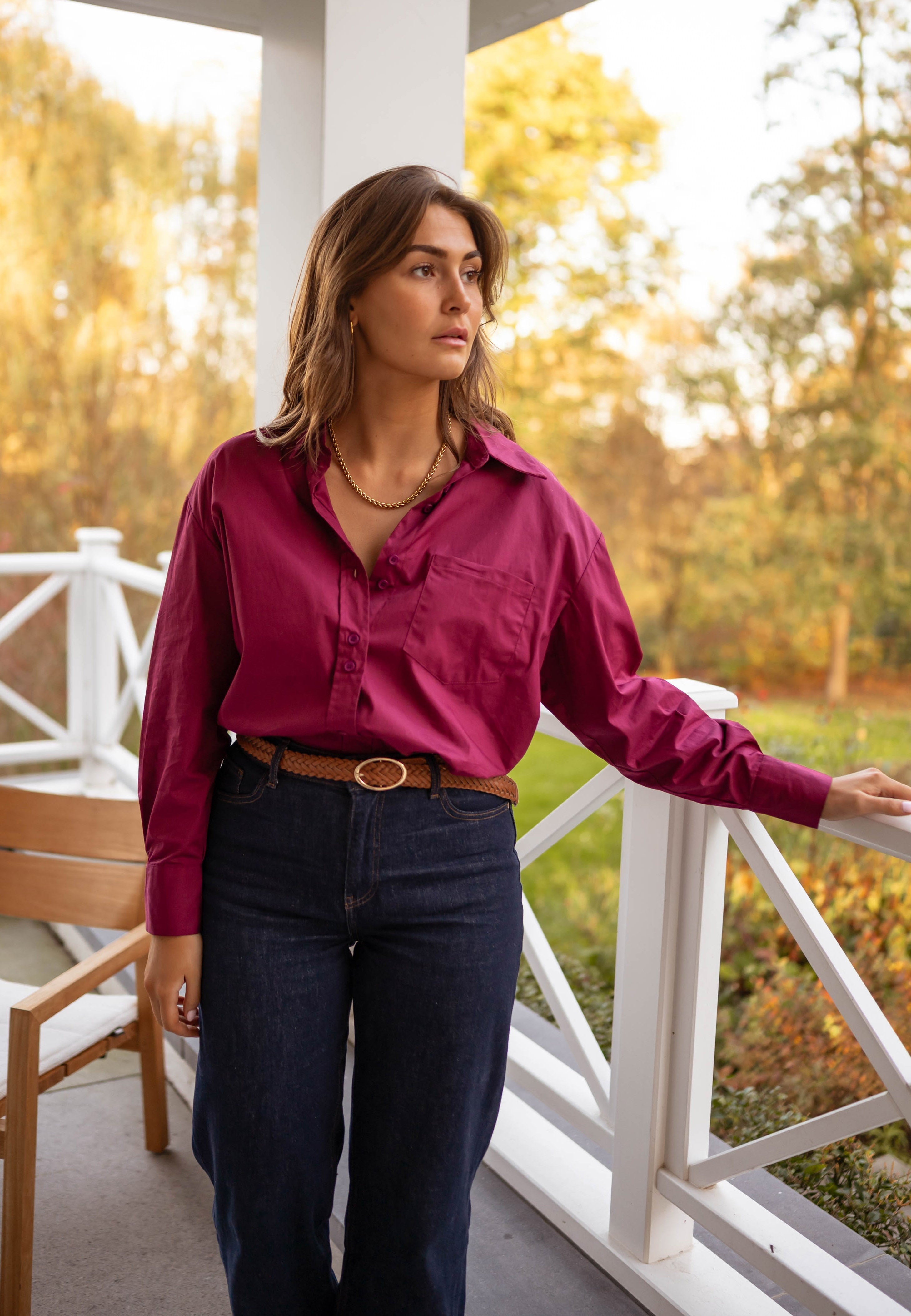 Embrace effortless style with the Burgundy Nyno Shirt. Designed with long sleeves and a buttoning tab, this shirt offers a slightly loose fit for ultimate comfort. The rich burgundy color adds a touch of sophistication, making it a versatile addition to any wardrobe. Perfect for both casual and semi-formal occasions, it’s a go-to piece for a chic, laid-back look.