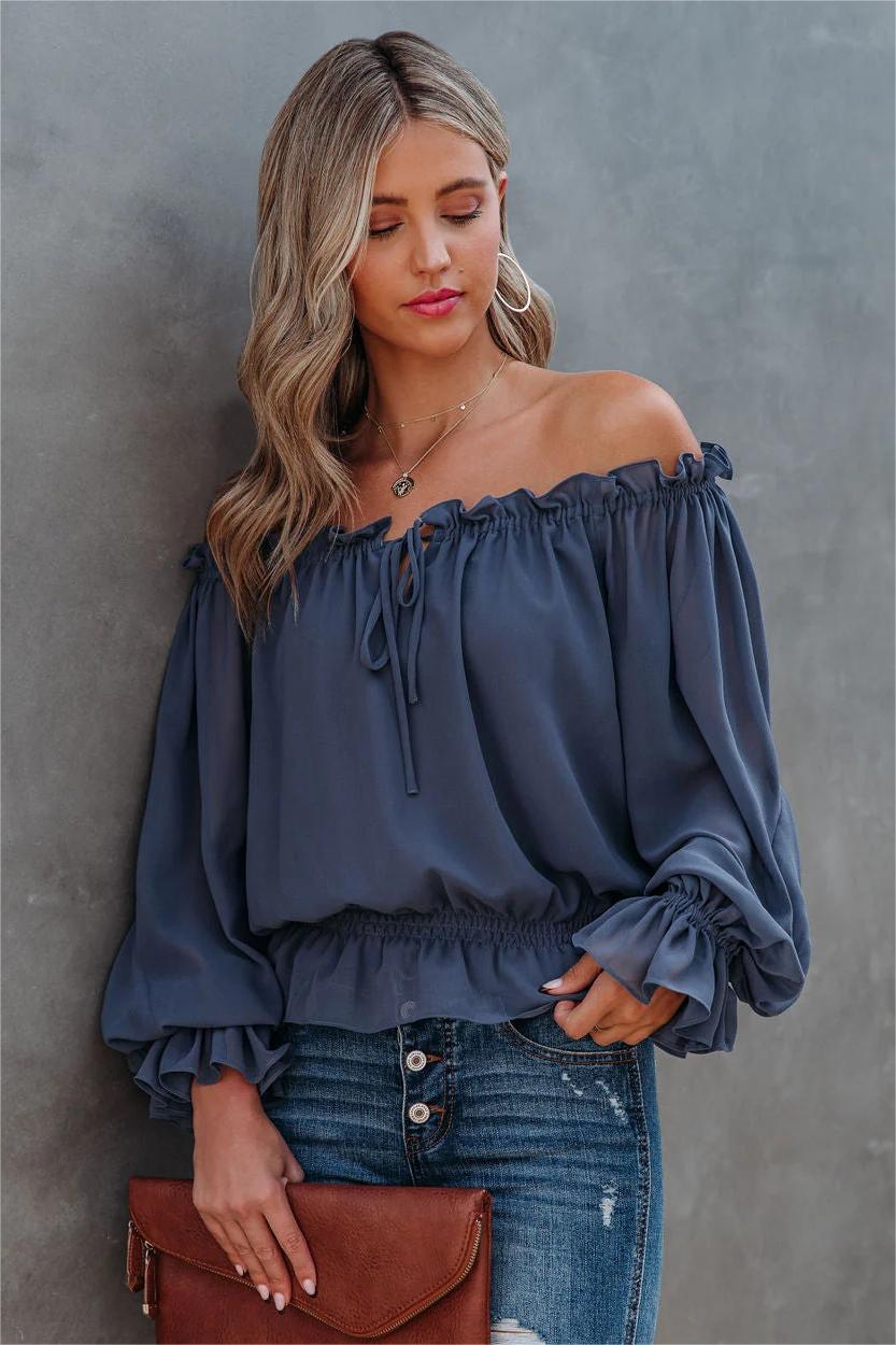 Our Caydence Chiffon Off The Shoulder Blouse is effortlessly adorable! This dusty blue colored top is crafted with a smocked waistband. Finished with a ruffle trimming. Styled with the Perfect Hoop Earrings. 5 Disc Choker. Gaia Coin Necklace. Simple Bangle Bracelet. Lauren Chain Cuff. Stella Crossbody Envelope Zip Clutch. Ultimate High Rise Split Ankle Distressed Skinny. and Ritz Faux Suede Pointed Heel.