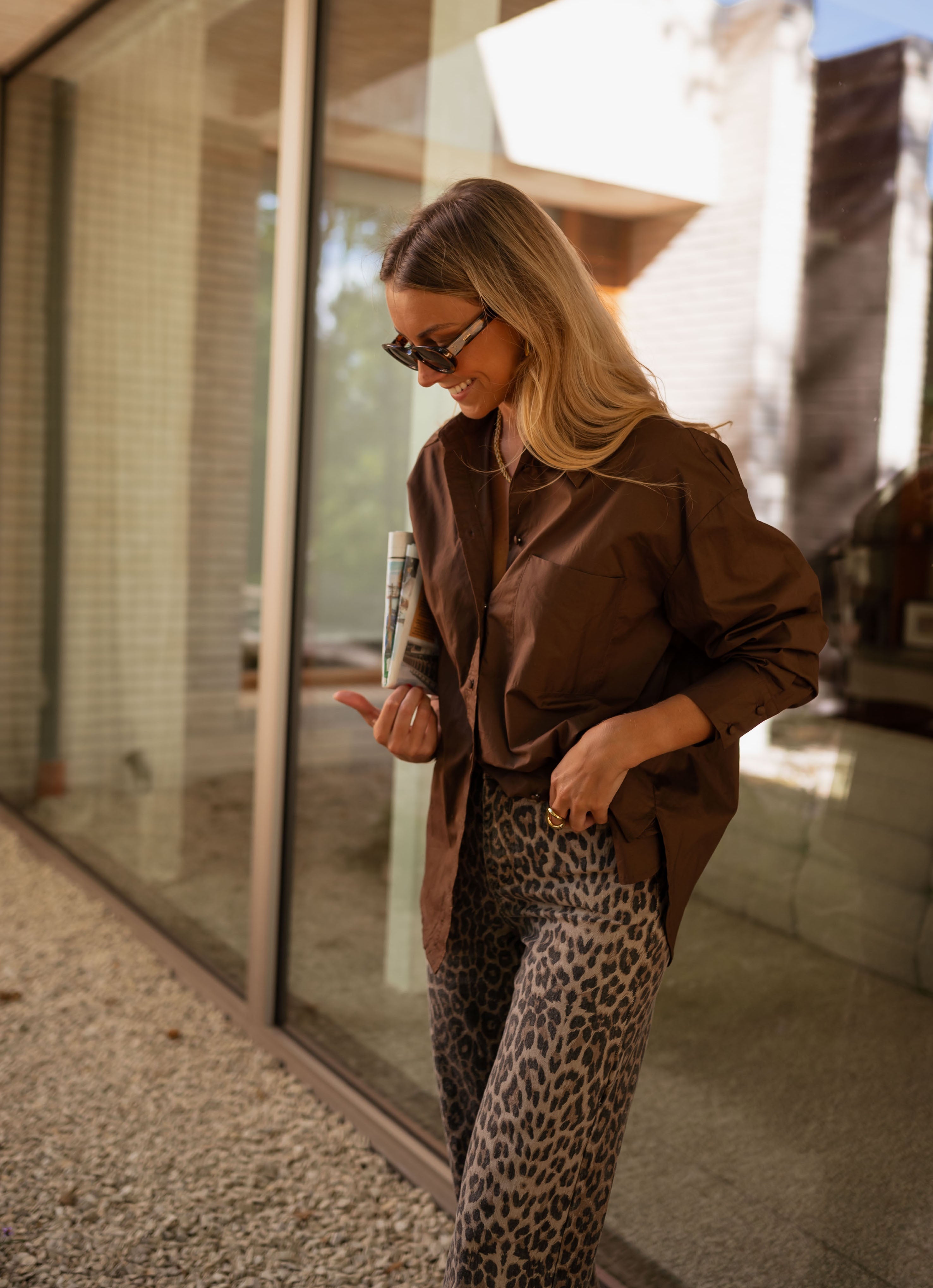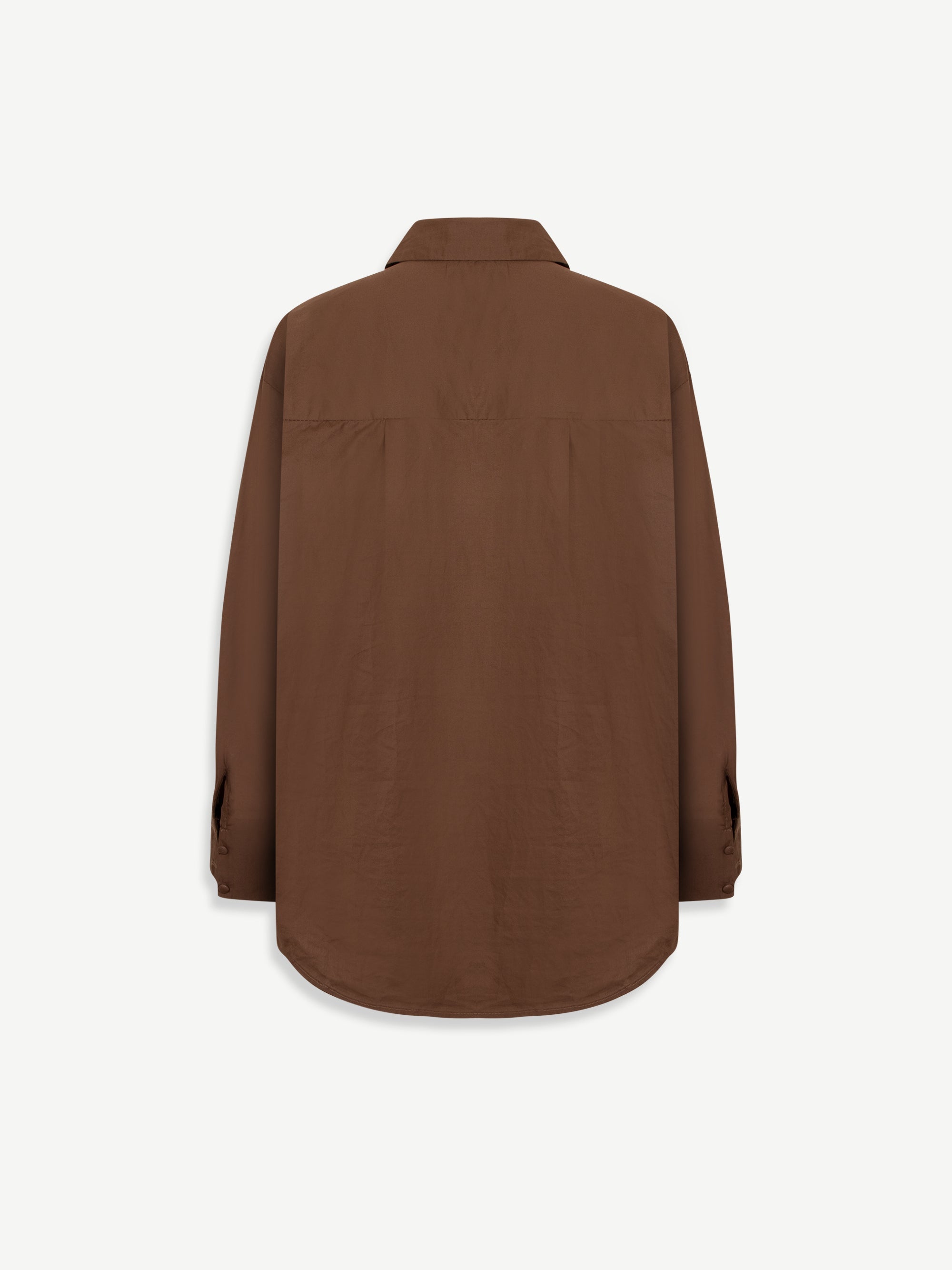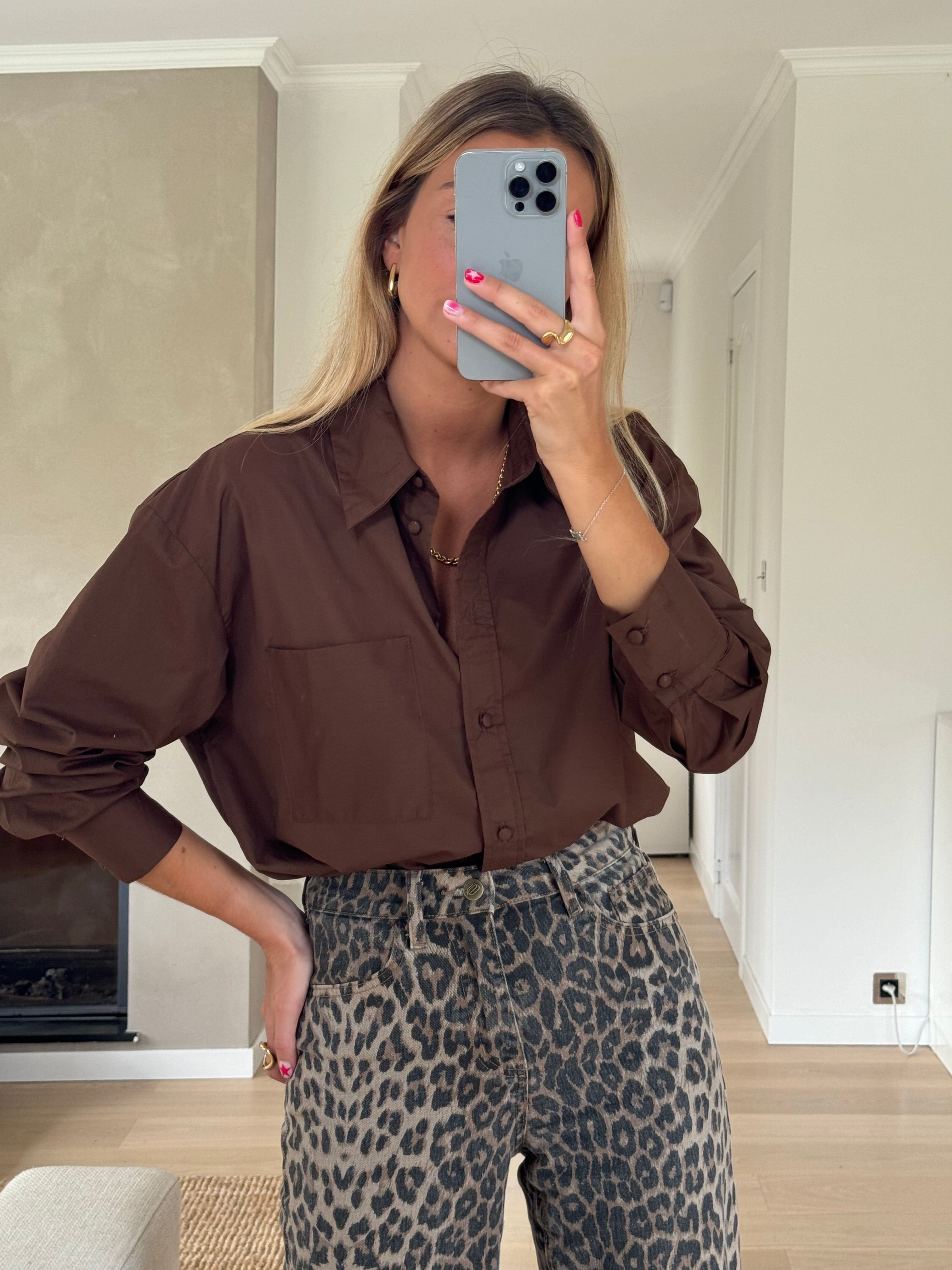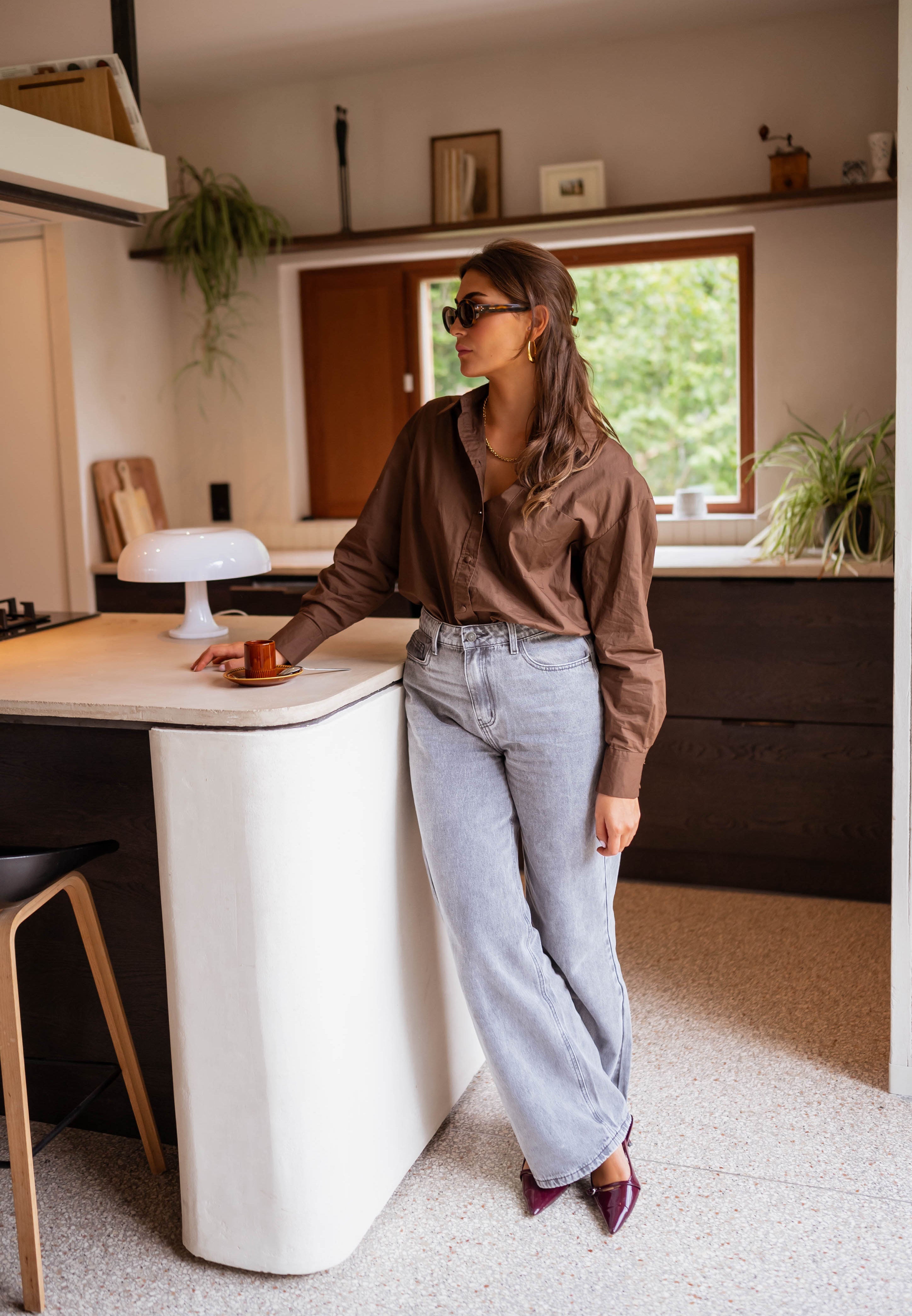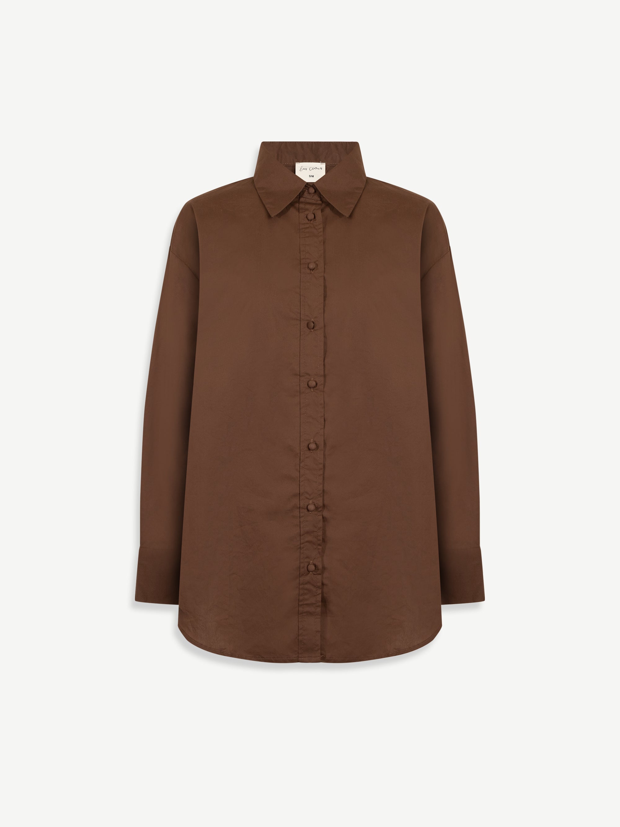 The perfect shirt for all occasions - this chocolate brown shirt boasts long sleeves, a convenient buttoning tab, and a flattering slightly oversized fit!