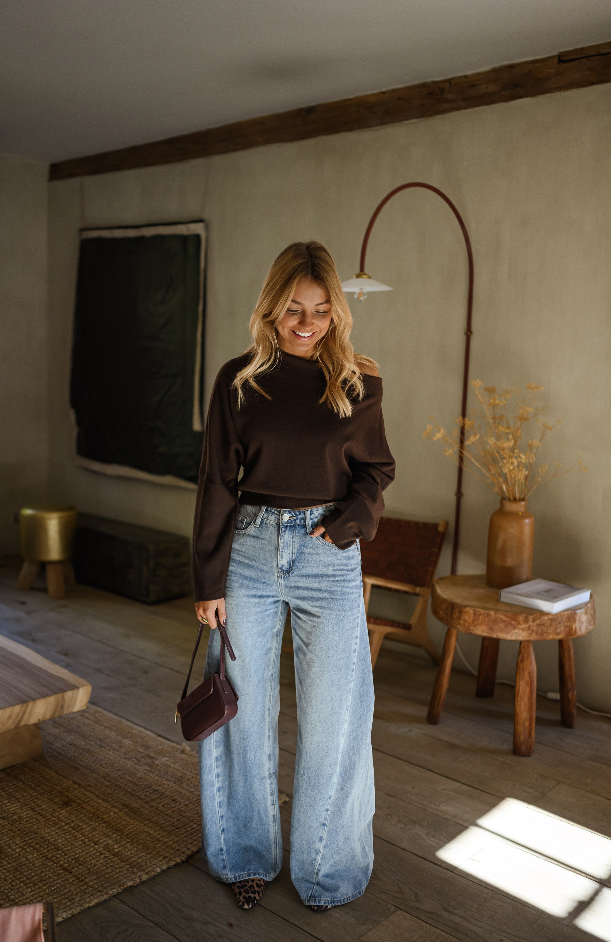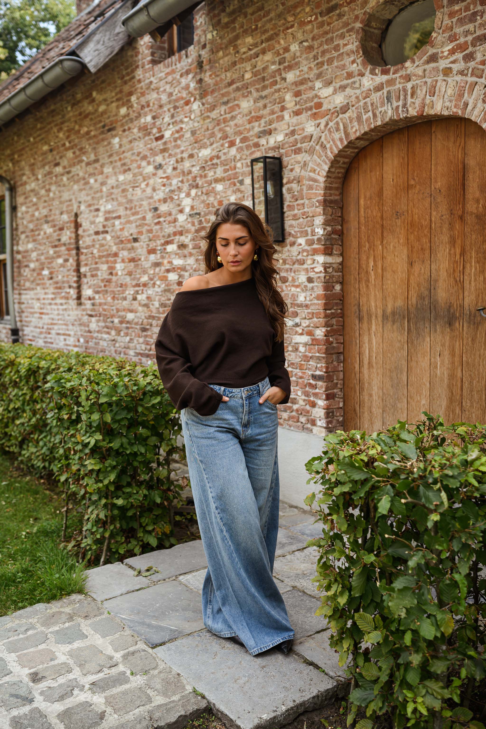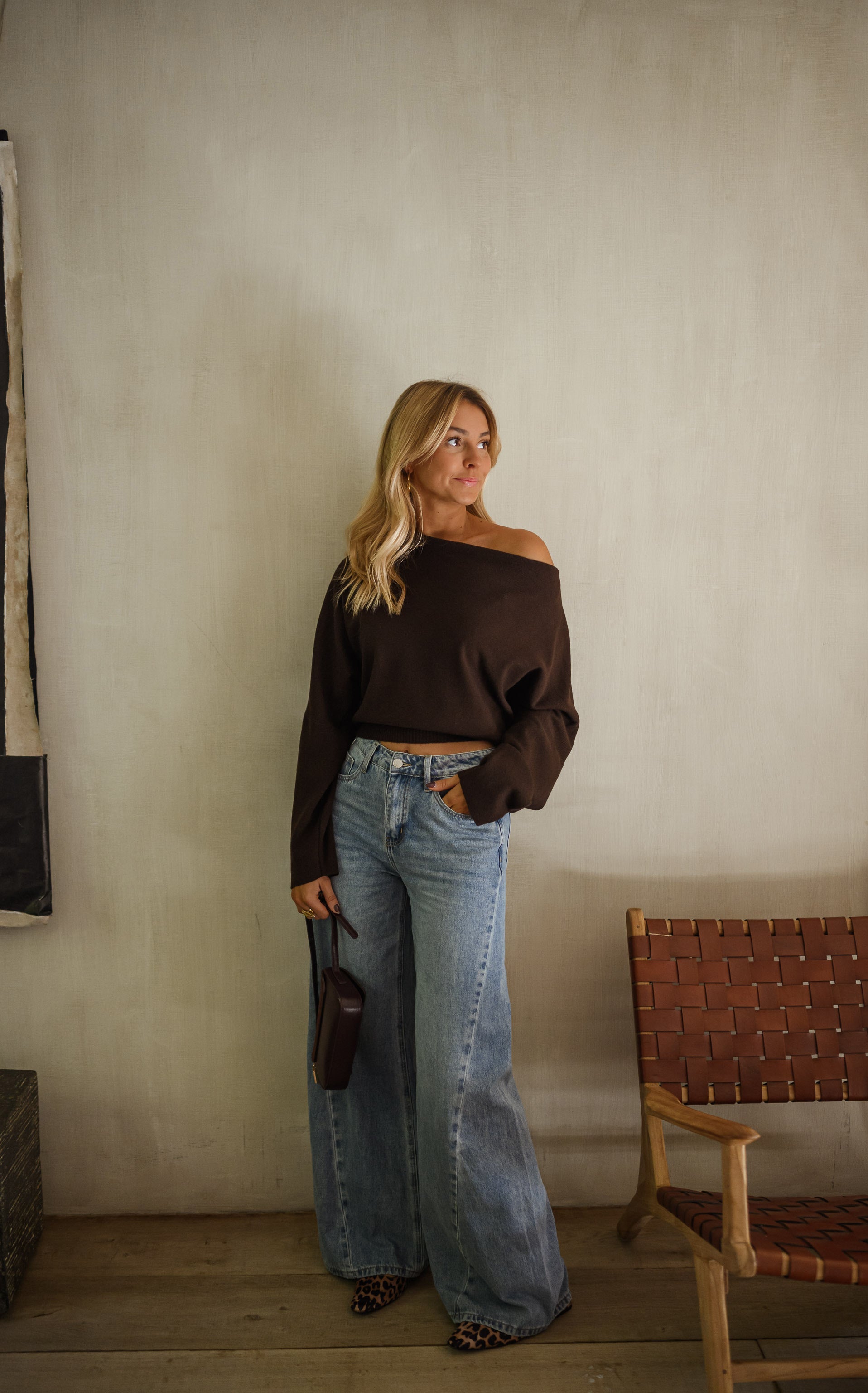 Embrace laid-back style with the Chocolate Richard Sweater. Featuring an off-the-shoulder collar and a gently draped front, this loose, slightly cropped knit adds a warm and modern touch to any outfit.
