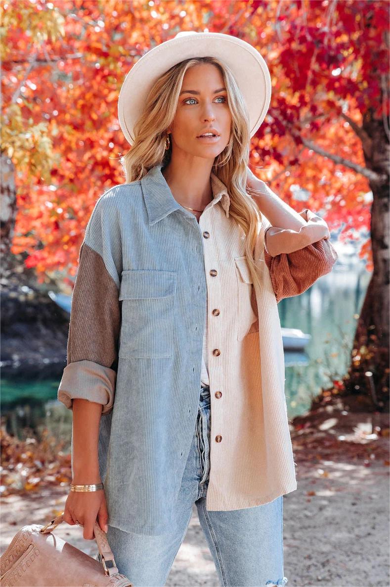 The colorblock trend is here to stay! Our Garwood Colorblock Corduroy Shacket features mocha grey. light blue. cream. and rust shades. Crafted with front button closures and bust pockets. Styled with the Reggie Fedora Hat. Tahiti Hoops. Monte Carlo 3.0 Necklace. Simple Bangle Bracelet. Highland Bag. Physique Racerback Tank. Kason Distressed High Rise Denim. and Arlene Faux Suede Lace Up Boot.