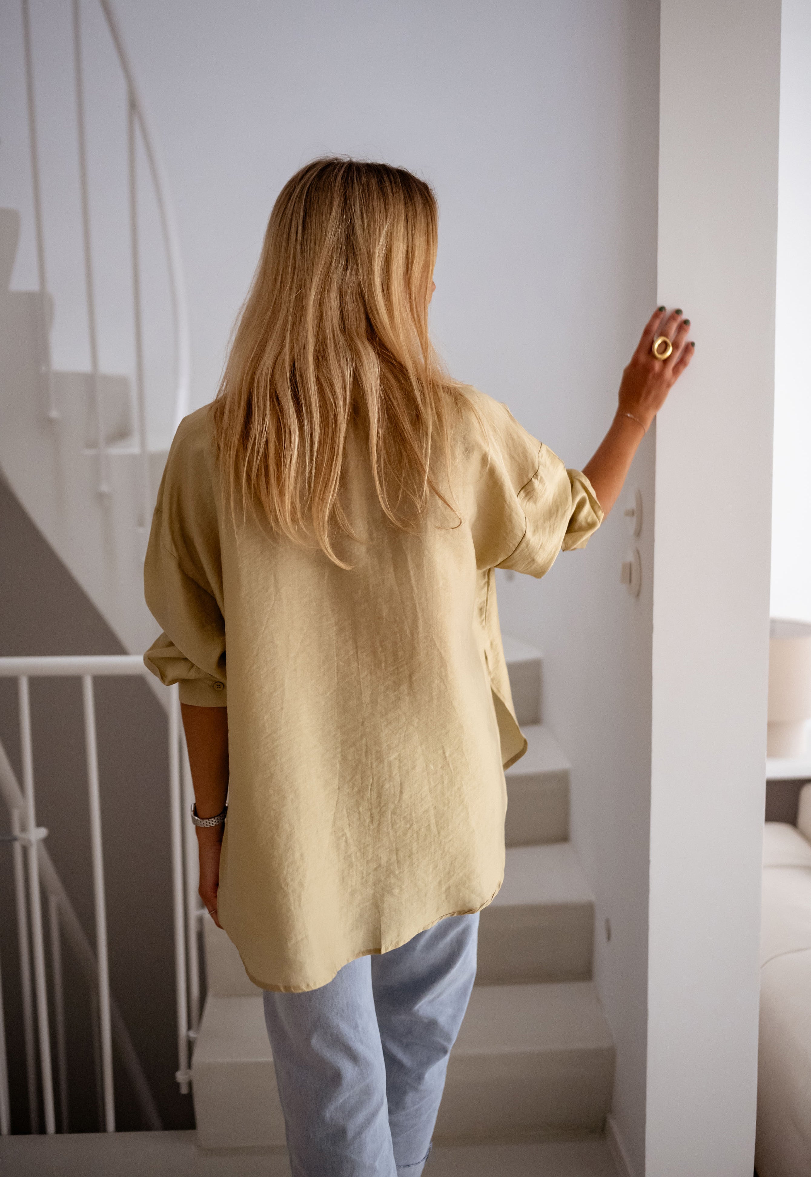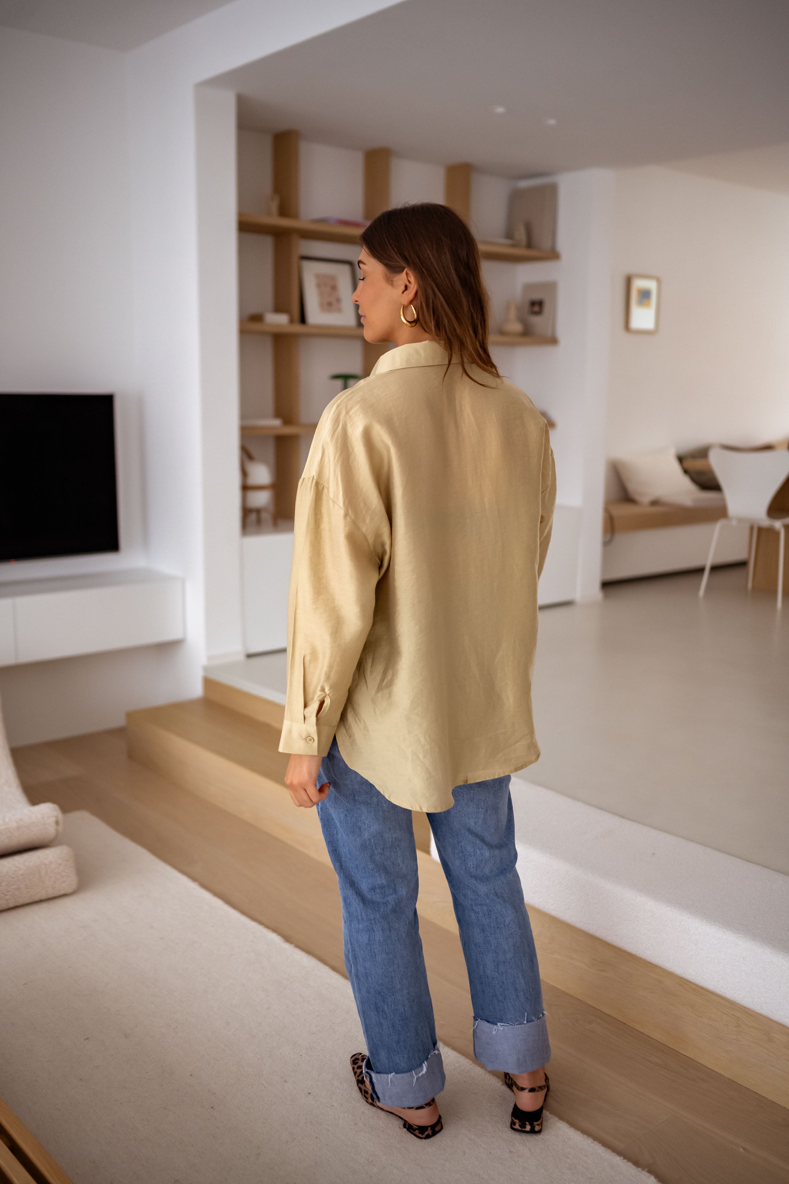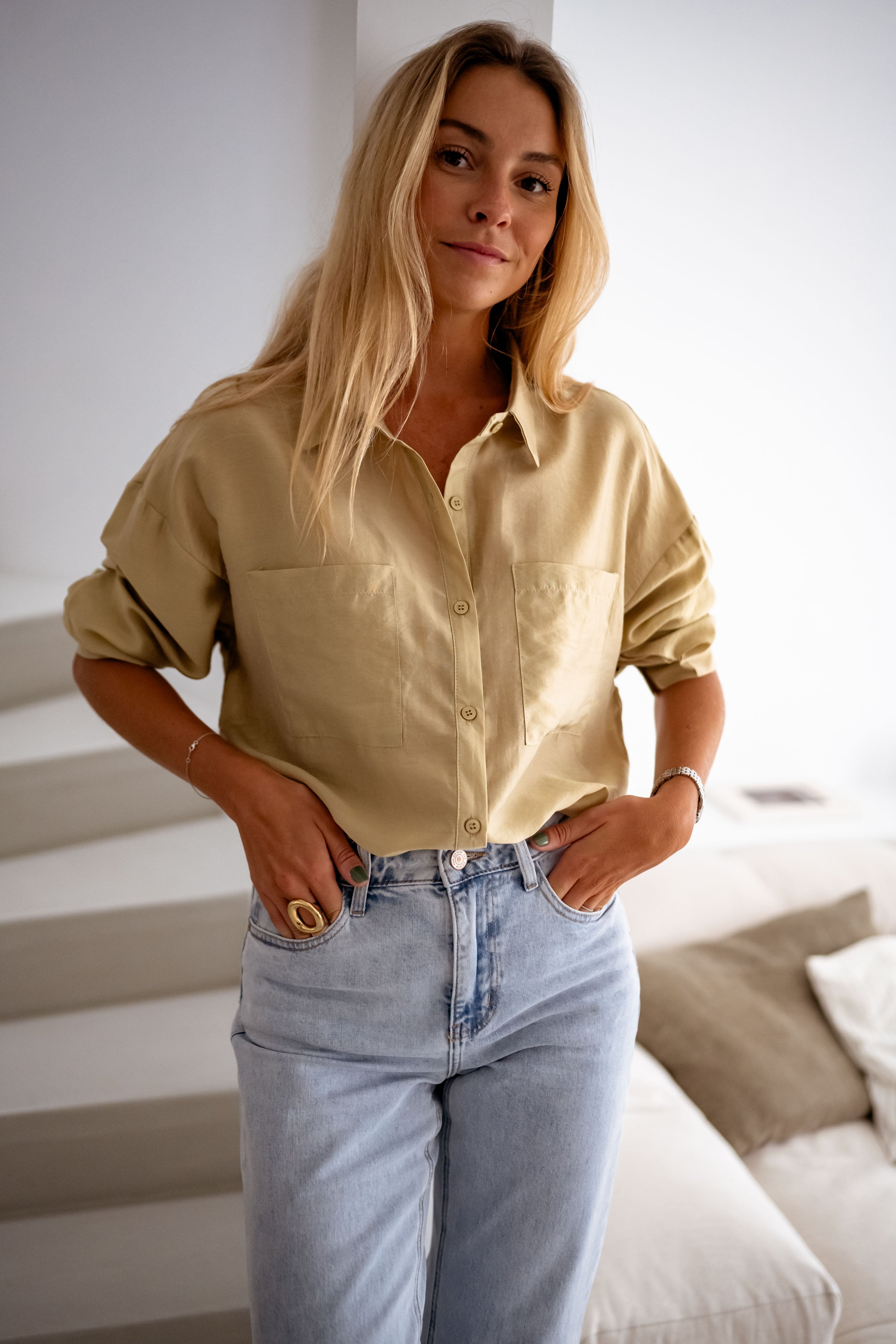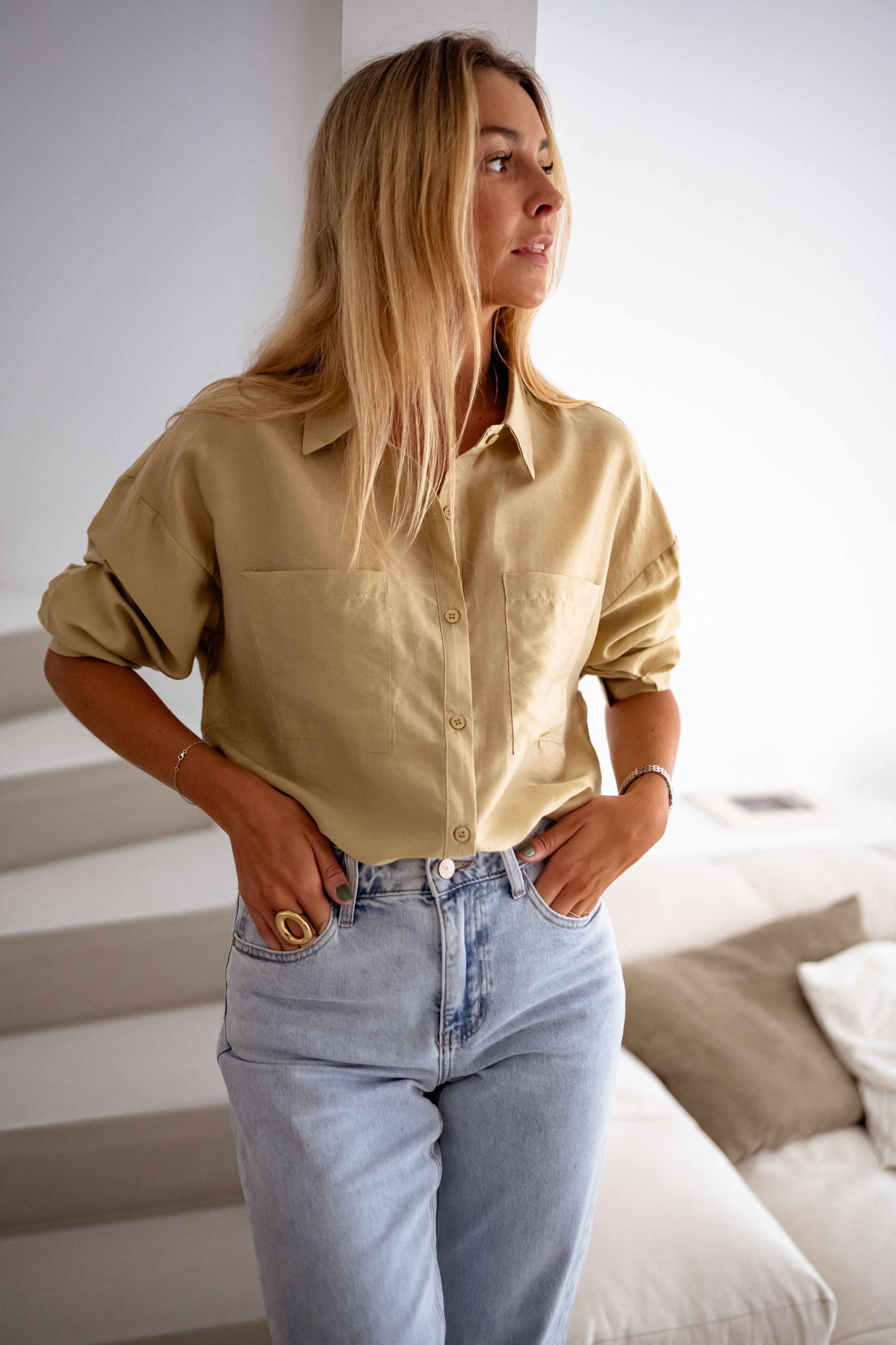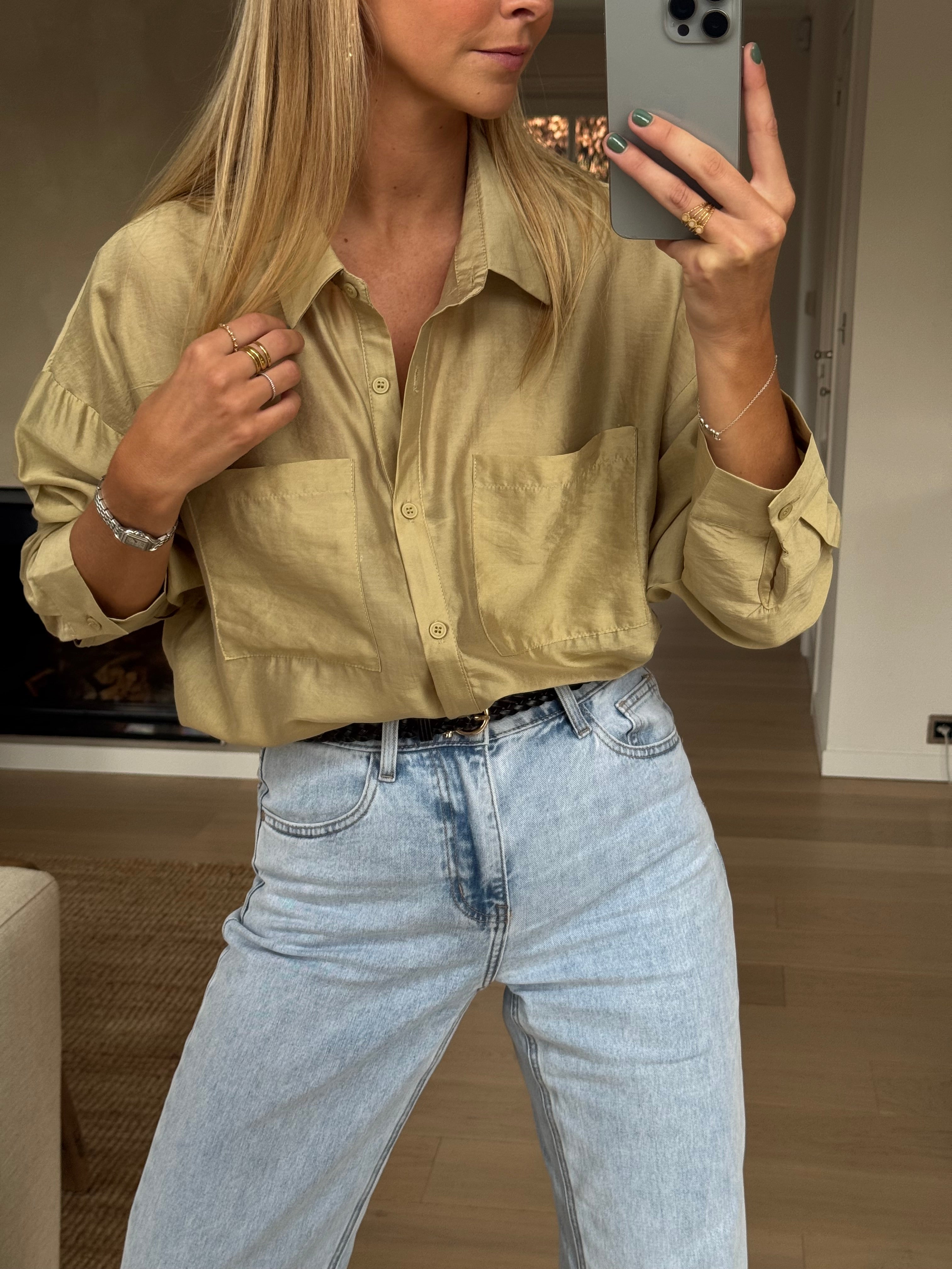 Radiate confidence in the Golden Taiba Shirt, a perfect blend of sophistication and modern charm. With its fluid drape and lustrous satin-effect fabric, this shirt catches the light beautifully. The structured shirt collar and detachable buttons offer versatility, while two front pockets add a chic yet practical touch. Designed for effortless elegance, it’s the ideal piece to elevate any look.