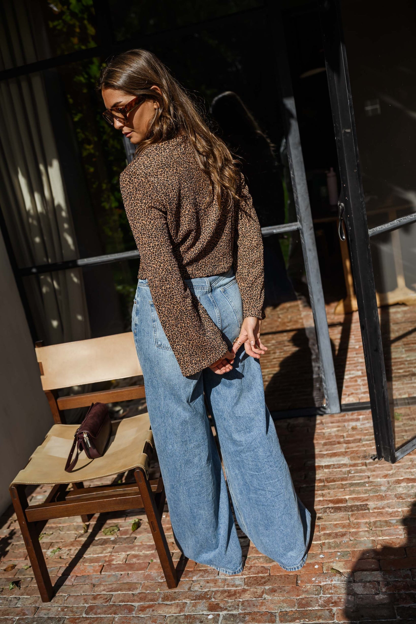 Bring a bold touch to your wardrobe with the Leopard Analy Blouse. Designed with a round neck and long, slightly flared sleeves, this unlined blouse offers a flattering, slightly short cut that pairs perfectly with high-waisted bottoms. Effortless, chic, and full of personality.