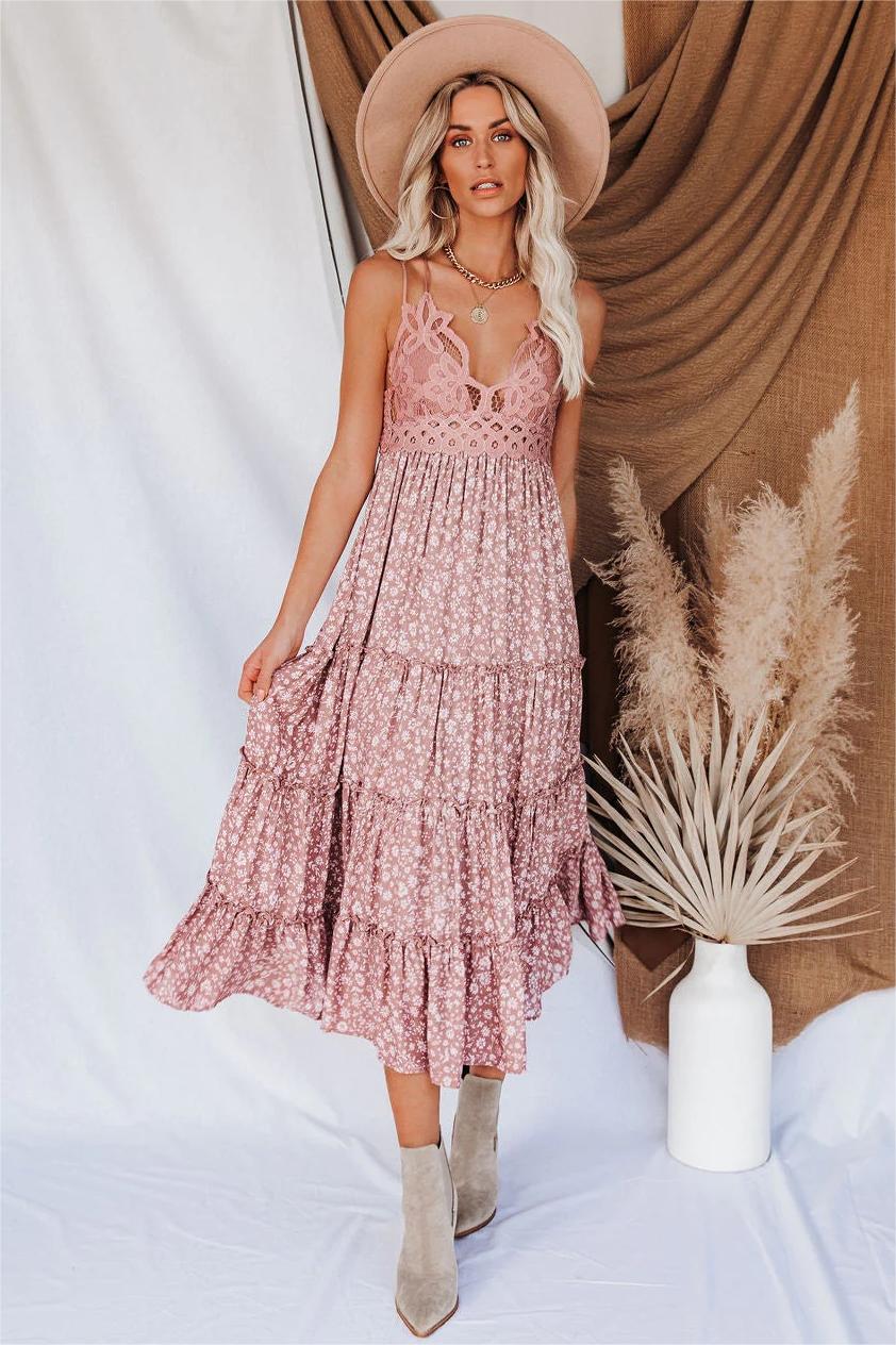 Bring on the warm springtime weather in our Let It Be Tiered Floral Lace Midi Dress! A dusty mauve and off white floral print adorns the skirt of this maxi. while the mauve lace bodice adds some contrast and flair. Finished with adjustable spaghetti straps. Styled with the El Dorado Hat. Perfect Hoop Earrings. Mica Chain Choker Necklace. Mosaic Coin Necklace. Pale September Pocketed Knit Cardigan. and Uptown Faux Suede Heeled Boot.