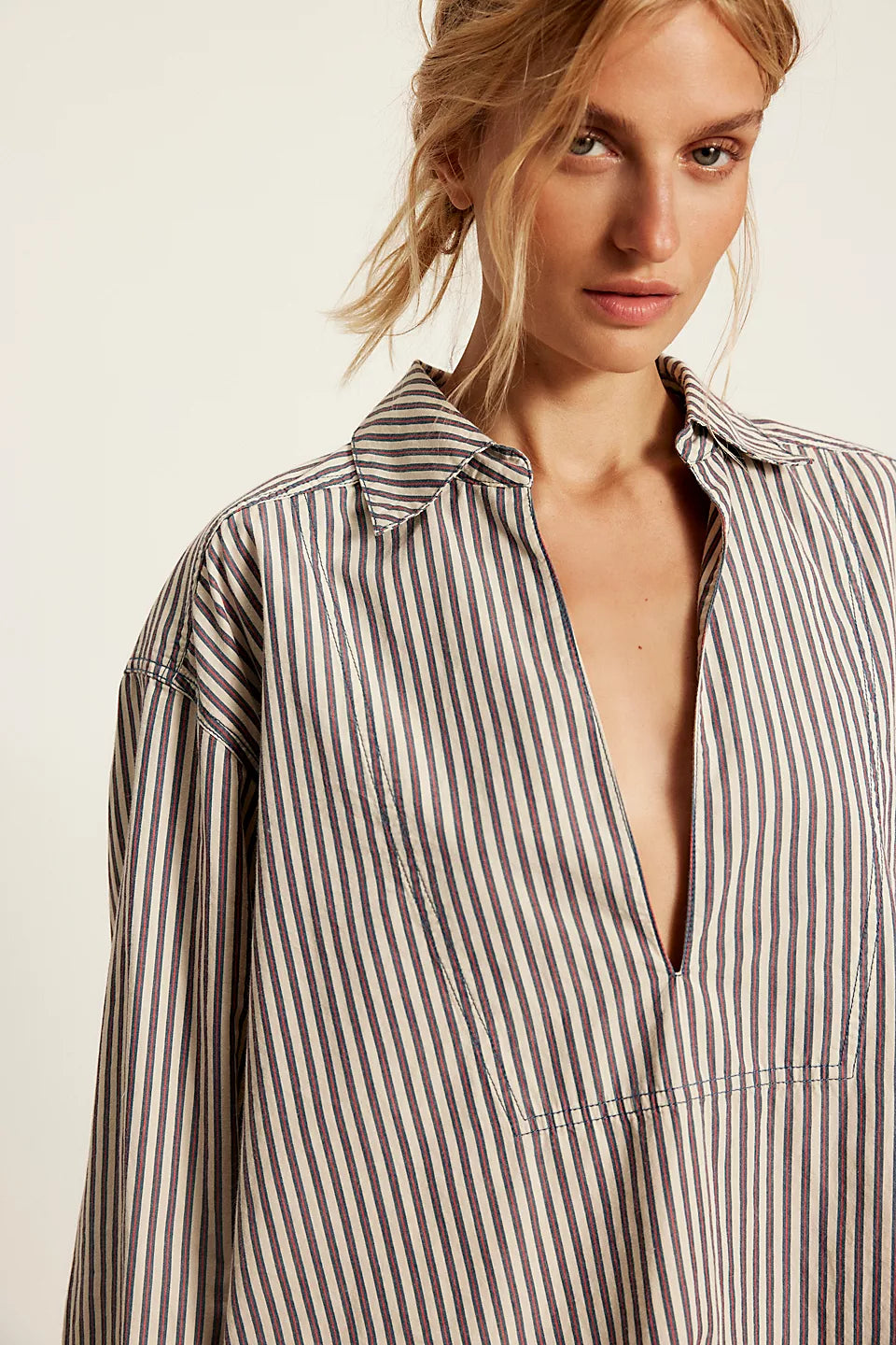 Detail: Billowy and breezy, this cotton long sleeve from We The Free features a collared V-neckline and easy oversized fit for endless styling throughout the year.