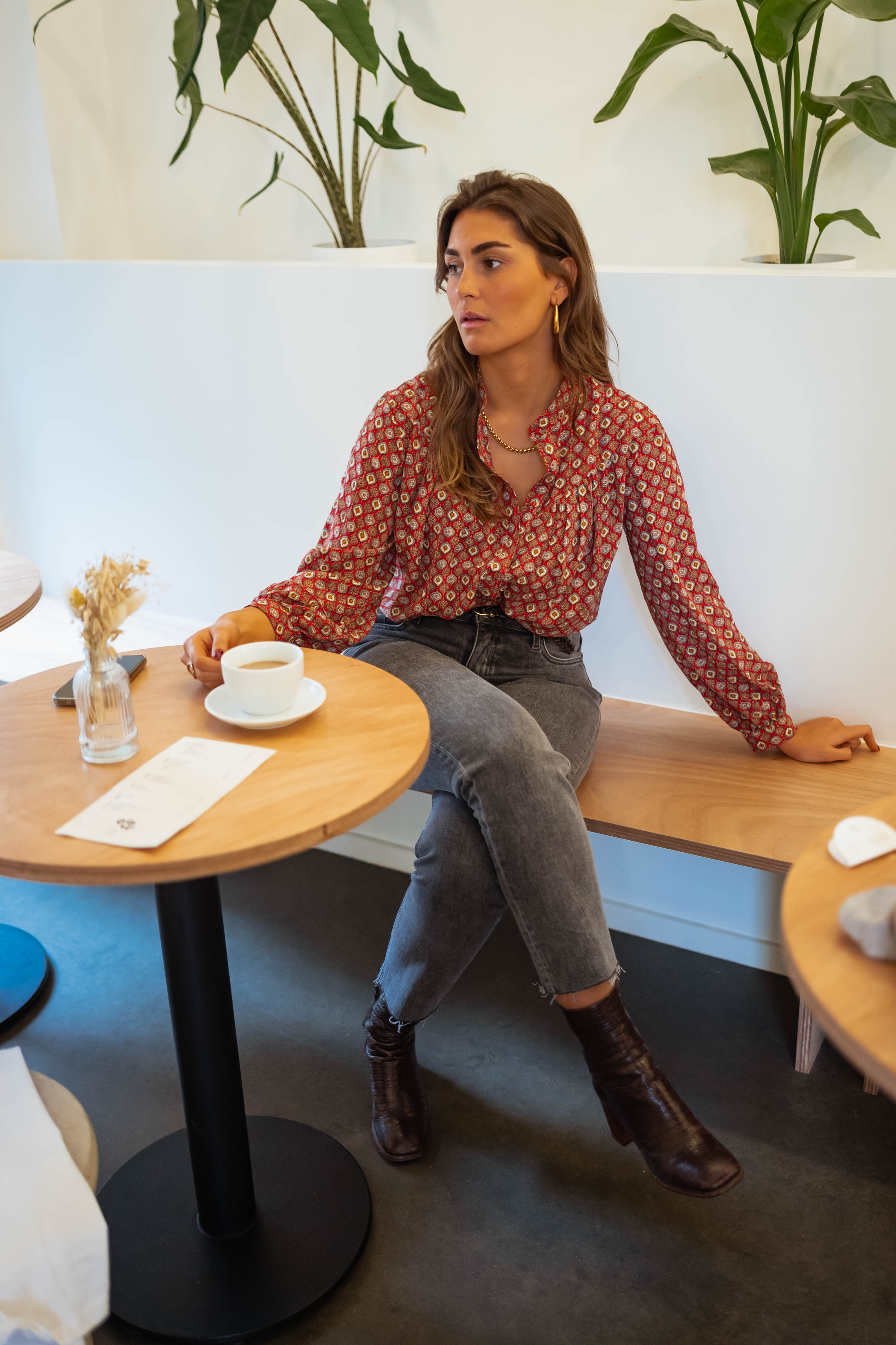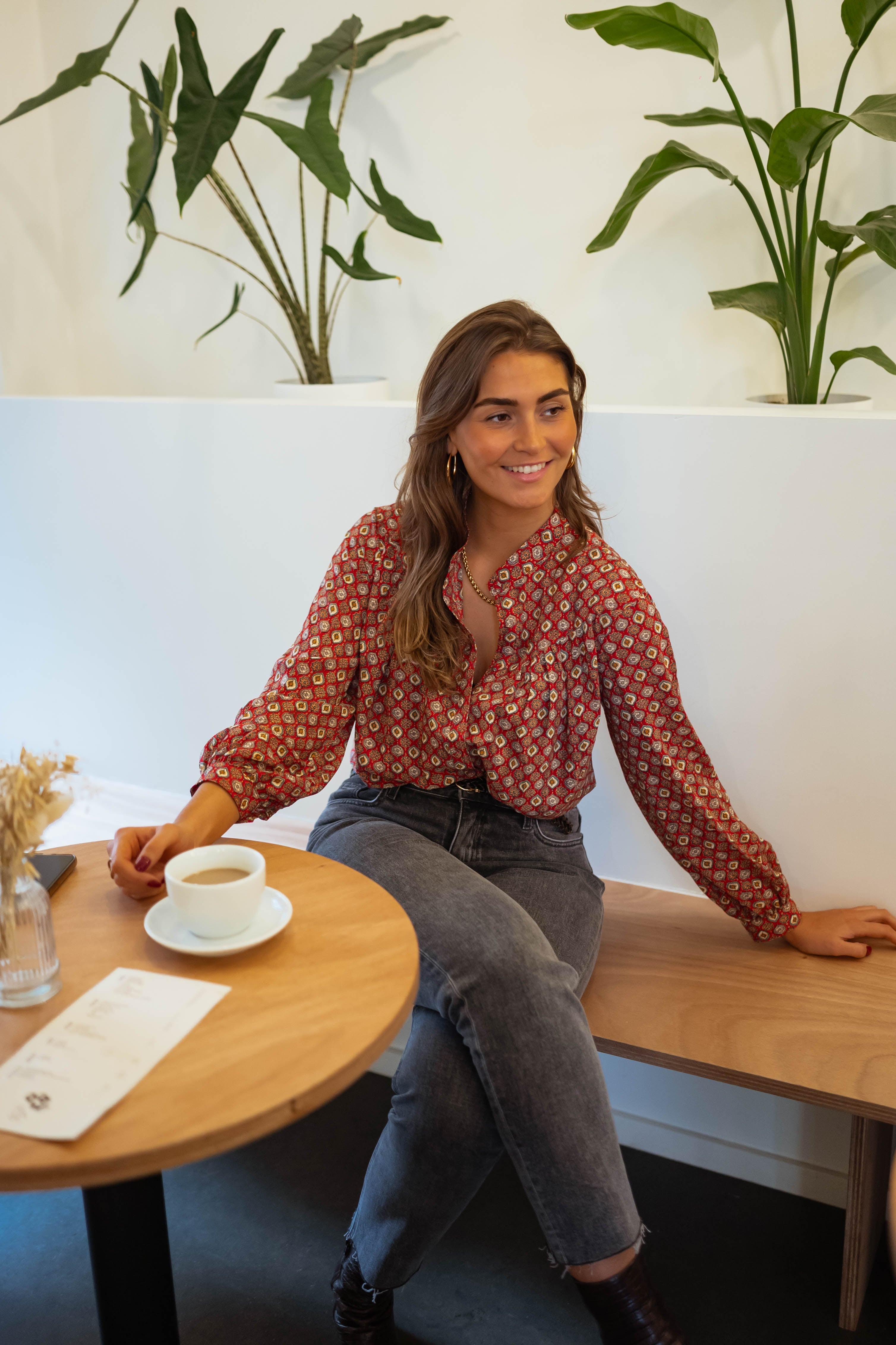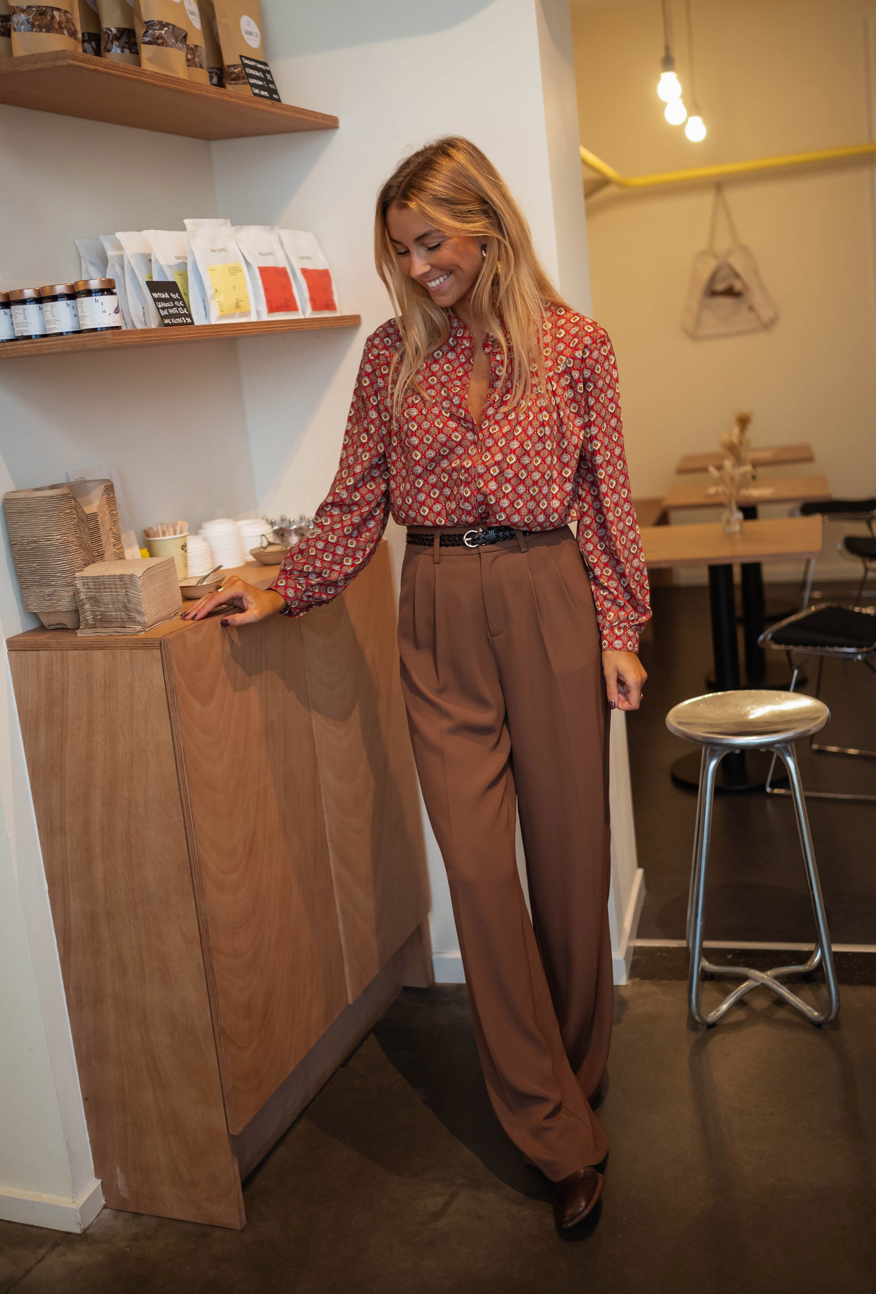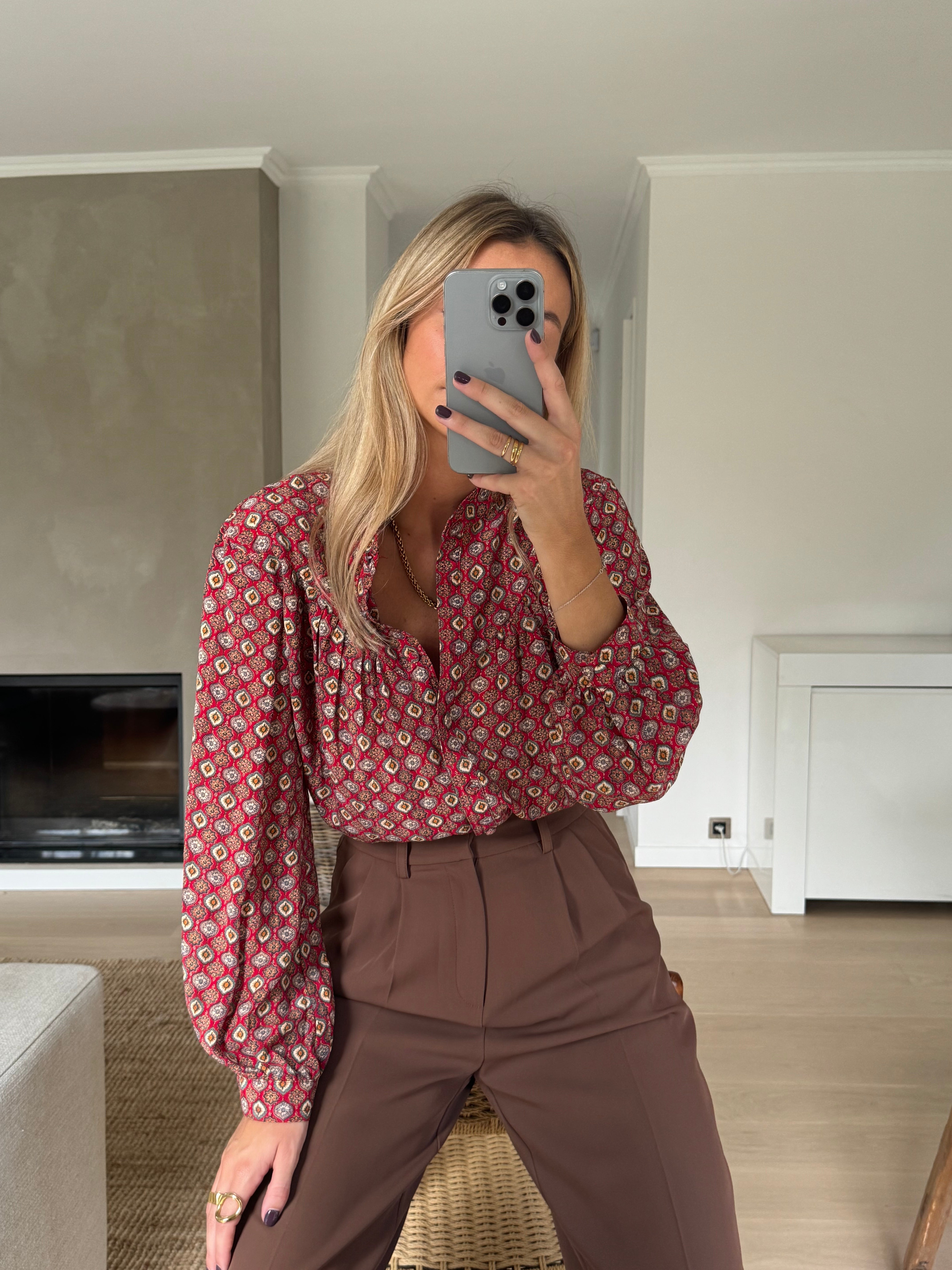 Long-sleeved with a buttoning tab, this Morena Blouse boasts a flowy design that is both practical and stylish. It is unlined but not sheer, making it a versatile piece for any occasion.