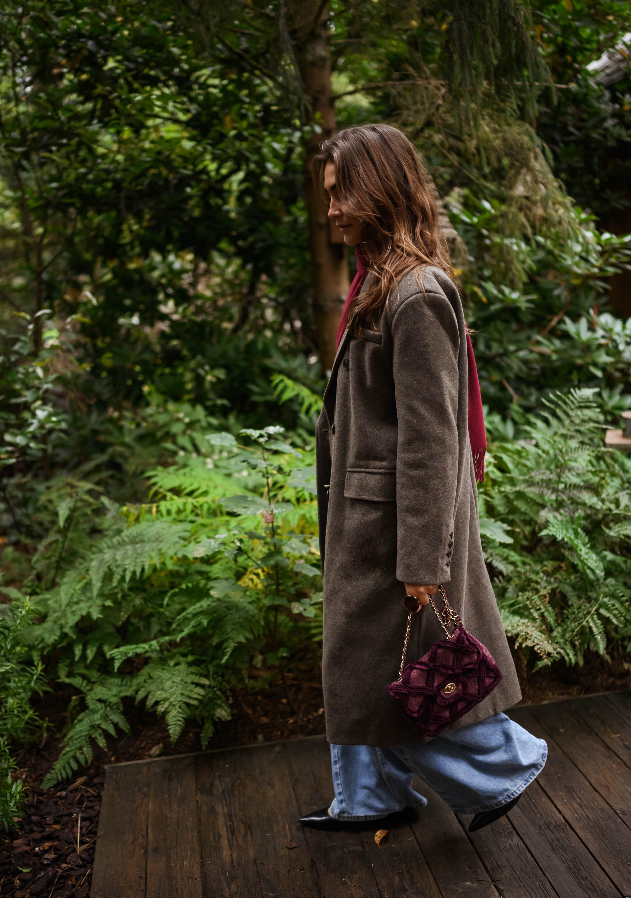 Stay warm and chic with the Taupe Blake Coat. Long sleeves, a button placket, side pockets, and shoulder pads combine with a lined interior to create a structured, timeless silhouette for cooler days.